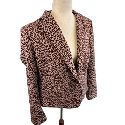 New Ann Taylor Animal Print Blazer Jacket Brown Tan Career Office Size 12