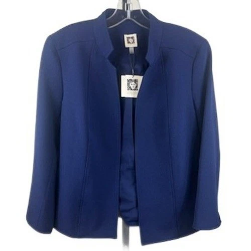 New Anne Klein Blazer Women's Size 4 Blue Collarless Open Front Jacket Career