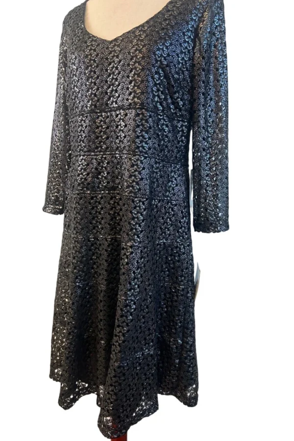 New Anne Klein Dress Cocktail Party Sparkly Black Silver Lace Size 14 $149