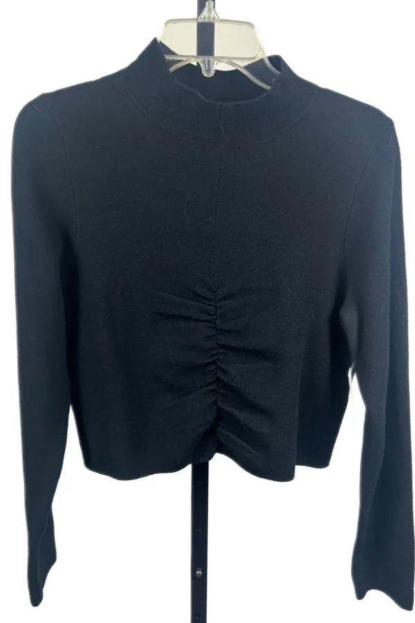 New Anthropologie Black Mock Neck Ruched Cropped Sweater Top Size Medium