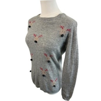 Artisan NY Reindeer Sweater Crewneck Holiday Christmas Winter Gray Size Medium