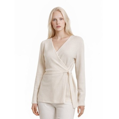 Athleta Sweater Women's Size XL Cream Merino Wool Cashmere Tie Waist Cozy