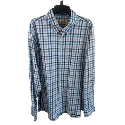 Barbour Mens Blue Plaid Long Sleeve Button Down Shirt Size XXL 2XL