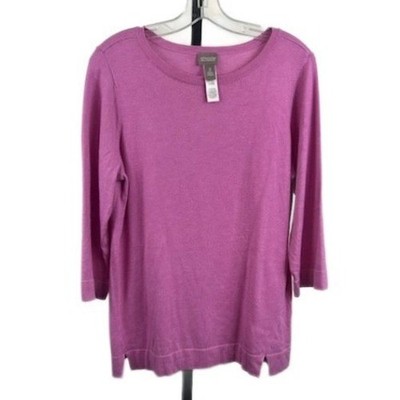 Chicos Sweater Women's Size 2 Large Purple 3/4 Sleeve Crew Neck Knit Top