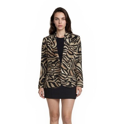 Chicos Blazer Women Size 1 US Medium Tan Black Zebra Print Single Button Jacket