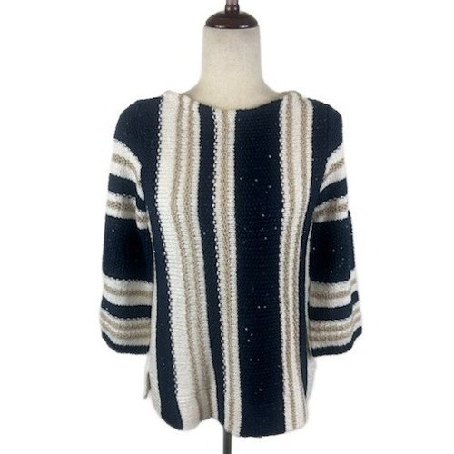 Chicos Blue Beige Metallic Striped 3/4 Sleeve Sweater Women's Size Small Chico 0