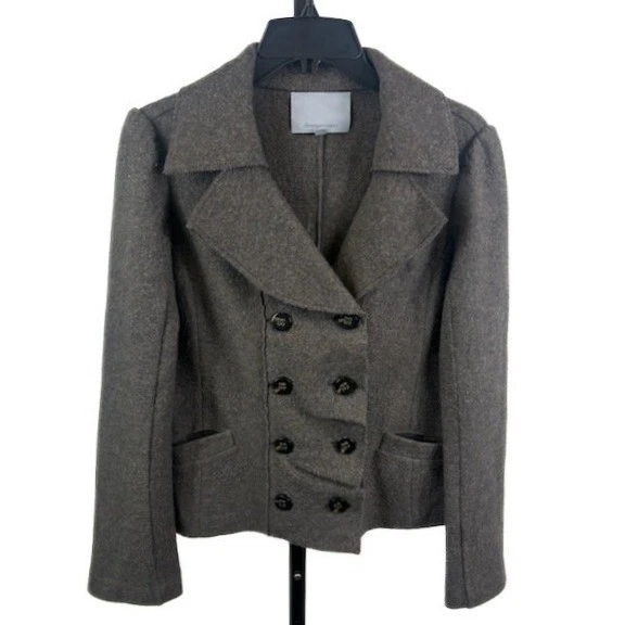 Classiques Entier Womens 100% Wool Brown Short Peacoat Jacket Blazer Size Small