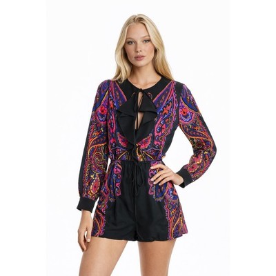 NWT Clover Canyon Romper Women Size Small Multi Paisley Ruffle Front Long Sleeve