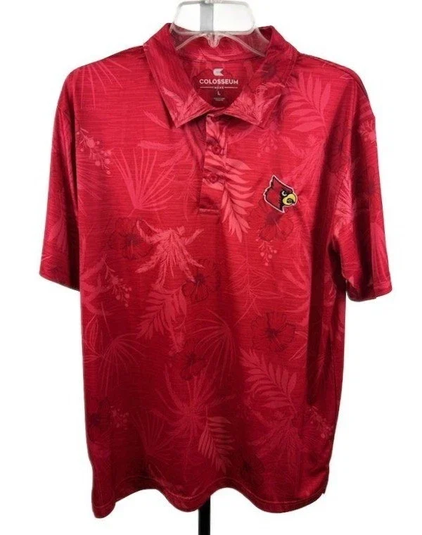 Colosseum UL Louisville Cardinals Men's Large Red Floral Polo Shirt Hawaiian