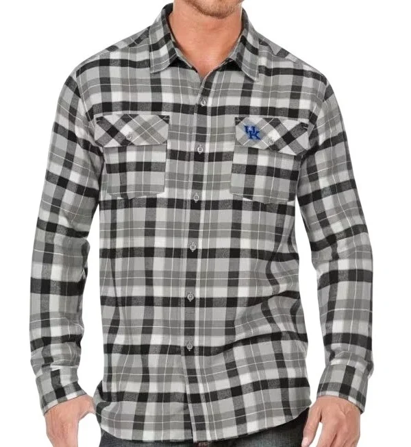 Colosseum Kentucky Wildcats Logo Flannel Shirt Mens Plaid Button Up Size Large