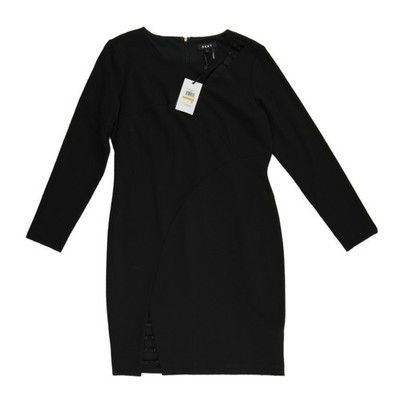 New DKNY Sheath Dress Women's Size 14 Black Beaded Long Sleeve Cocktail Career