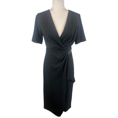 New DKNY Black Dress Short Sleeve Sheath Pewter Chain Cocktail Career Size 2