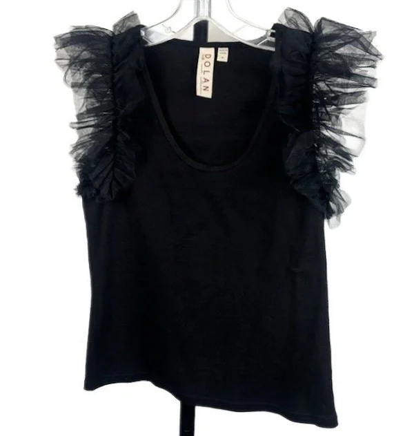 Dolan Women's Size Medium Black Tulle Flutter Sleeve Scoop Neck Top