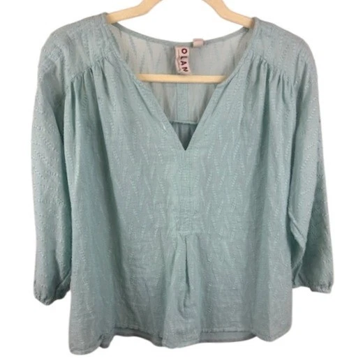 Dolan Anthropologie Top Blouse Women's Size Small Light Blue V-Neck 3/4 Sleeve