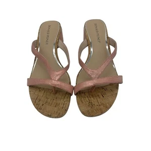 New Donald Pliner Mida Pink Leather Metallic Thong Sandals Cork Heel Size 10M