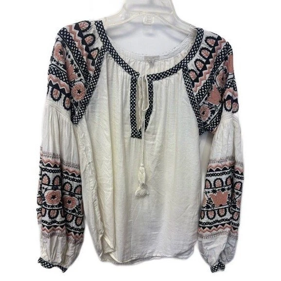 Ecote Anthropologie Women's Size Small Cream Embroidered Peasant Blouse Top Boho