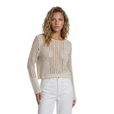 Free People Linen Cotton Sweater Top Women's Size Small Beige Pointelle Knit