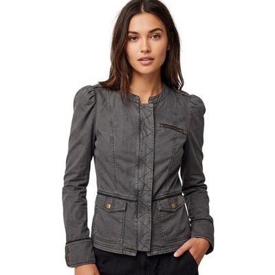 Free People 1070 Utility Jacket Women's Size 4 Gray Cotton Ripstop Puff Sleeve
