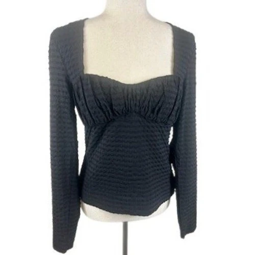 New GANNI Black Stretch Seer Square Neck Long Sleeve Fitted Top Size 38 6 M $295
