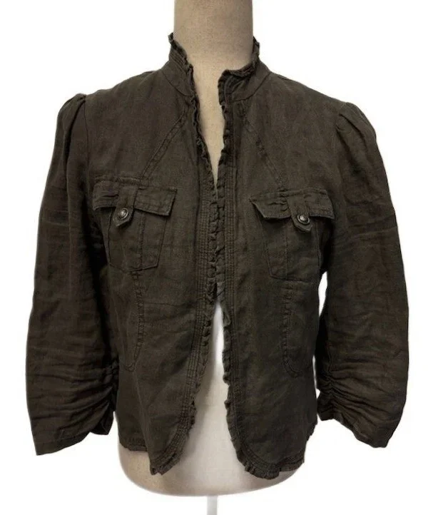 INC International Concepts 100% Linen Jacket Women's Size Medium Olive Green