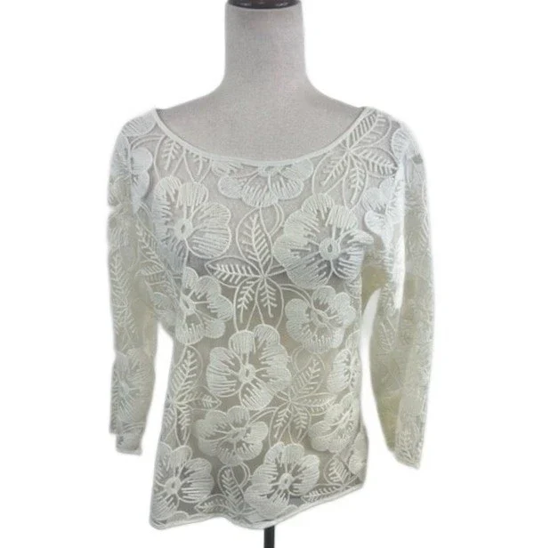 INC International Concepts Blouse Women's Size Large Lace 3/4 Sheer Sleeve Top