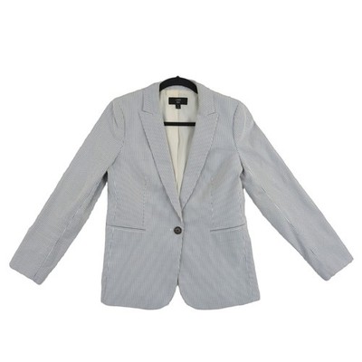 J.Crew Seersucker Blazer Women's Size 6 Blue White Striped Single Button Jacket