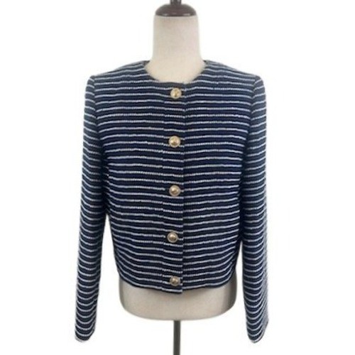J.Crew Women's Size 6 Navy White Striped Tweed Cropped Gold Button Blazer