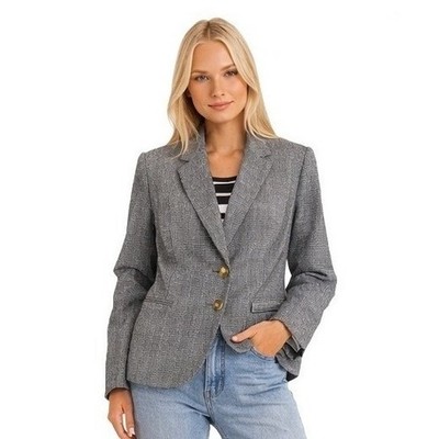 J.Crew Linen Cotton Dalton Blazer Jacket Women's Size 4 Blue White Herringbone