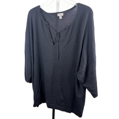 J.Jill Black 100% Cashmere V-Neck Tie Front Sweater Women's Plus Size 4X