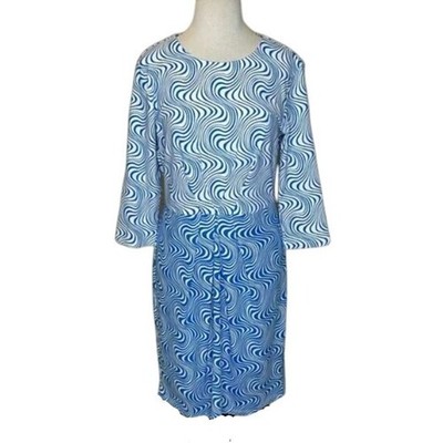 J. McLaughlin Dress Blue White Swirl Print 3/4 Sleeve Women's Size Large