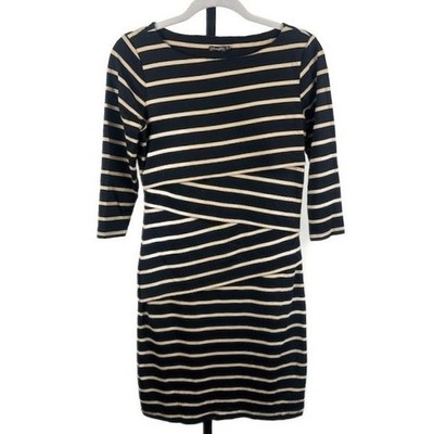 J. McLaughlin Bandage Dress Women's Size XS Black Tan Striped 3/4 Sleeve Sheath