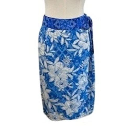 New Johnny Was California Clio Midi Coverup Skirt Blue Floral Size Small