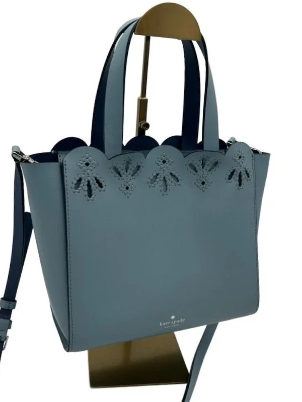 Kate Spade Bag Tote Perforated Scallop Tote Lagoon Blue Leather Crossbody