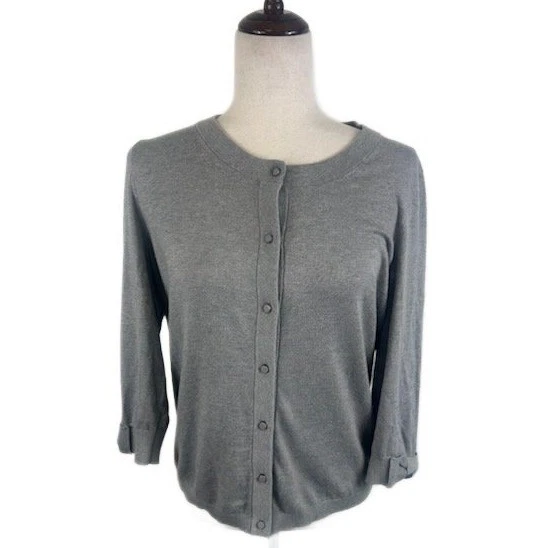 Kate Spade Gray Knit Cardigan Sweater 3/4 Sleeve Button Front Size Large
