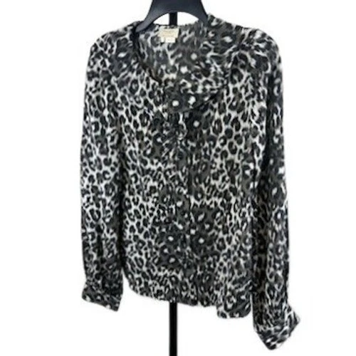 Kate Spade New York Gray Leopard Print 100% Silk Blouse Long Sleeve Size 8