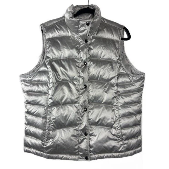 Lands End Down Puffer Vest Women's Size XL Silver Metallic Zip Front Pockets