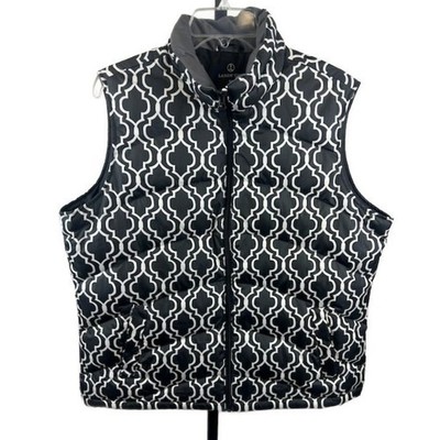 Lands' End Down Puffer Vest Women's Size XL Black White Quilted