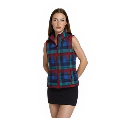 New Lands' End Puffer Vest 600 Down Fill Red Buffalo Plaid Women's Size Small