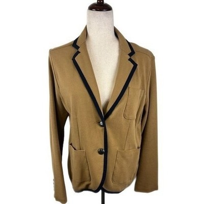 Lands' End Women's Blazer Jacket Tan Brown Black Trim Career Size 14