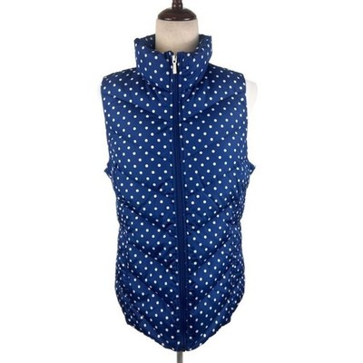 Lands' End Womens Puffer Down Vest Polka Dot Blue Quilted Size M/T 10-12 Medium