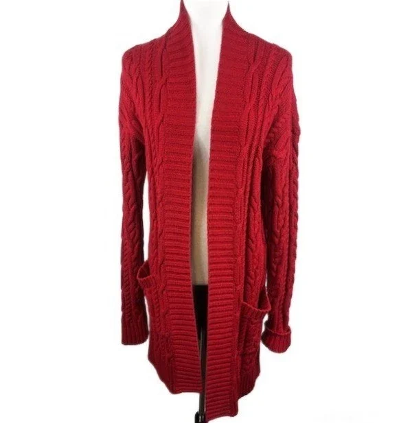 Lauren Ralph Lauren Red Cable Knit Long Cardigan Sweater Women's Size Medium