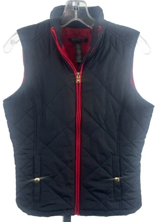 Classic Lauren Ralph Lauren Quilted Puffer Vest Black Red Size Small
