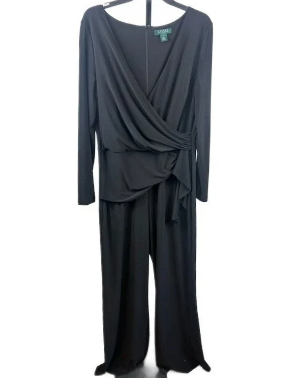 Lauren Ralph Lauren Black Long Sleeve Wrap Front Jersey Jumpsuit Size 14