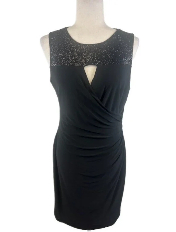 Lauren Ralph Lauren Black Sleeveless Sequin Sheath Dress Party Cocktail Size 12