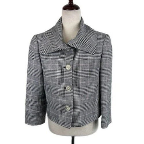 Lauren Ralph Lauren Plaid 100% Linen Lined Houndstooth Blazer Size 4