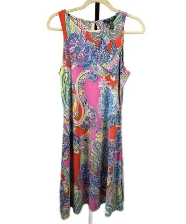 Lauren Ralph Lauren Dress Women's Size Medium Pink Blue Paisley Sleeveless Shift