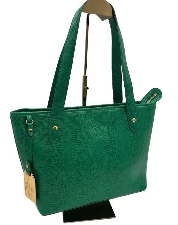 Lauren Ralph Lauren Tote Bag Purse Lizard Embossed Green Leather Shoulder Purse