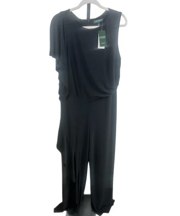 NWT Ralph Lauren Black Ruffle Shoulder Jumpsuit Cocktail Holiday Party Size 16