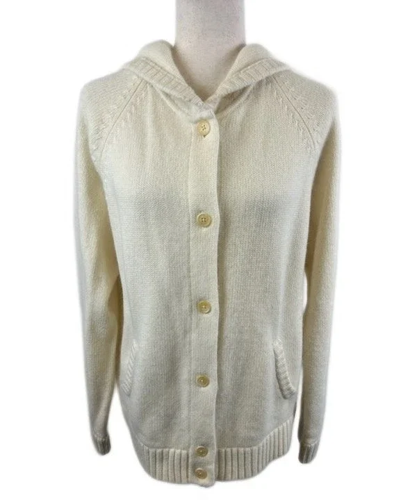 Lauren Ralph Lauren Sweater Women's Size Large Cashmere Wool Cream Hood Cardigan