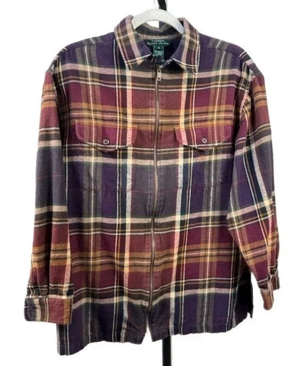 Lauren Ralph Lauren Women's Size Medium Plaid Full Zip Flannel Jacket Shirt